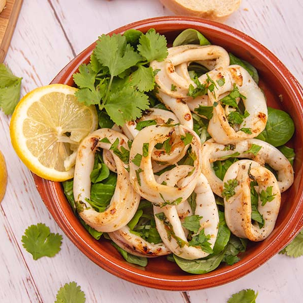 Mixed seafood, mussels, king prawn, cherry tomatoes, garlic, local white wine and fine herbs.